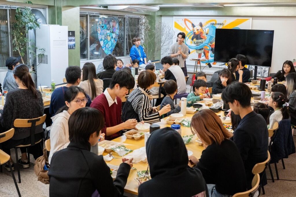 渋谷区SDGs協会では毎月第4木曜日に「渋谷センター街こども食堂」を開催しています。2025年10月23日(木)の回には青山学院大学の手話部の方々が来てくれました!