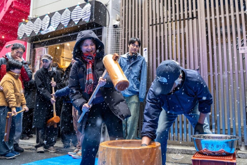珍しく雪が降ったこの日。渋谷センター街にある渋谷Lストリートからは「よいしょー!」という謎の掛け声が響き渡りました。その正体とは、そう。餅つきです。